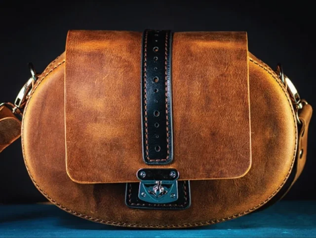 Овальная очень удобная, компактная, стильная женская сумка из кожи от Lexy Leather Craft