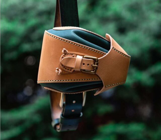 Небольшая кожаная сумочка на ремень, подходит для мелочей, в форме рюкзака от мастерской кожевенного дела Vasile and Pavel.